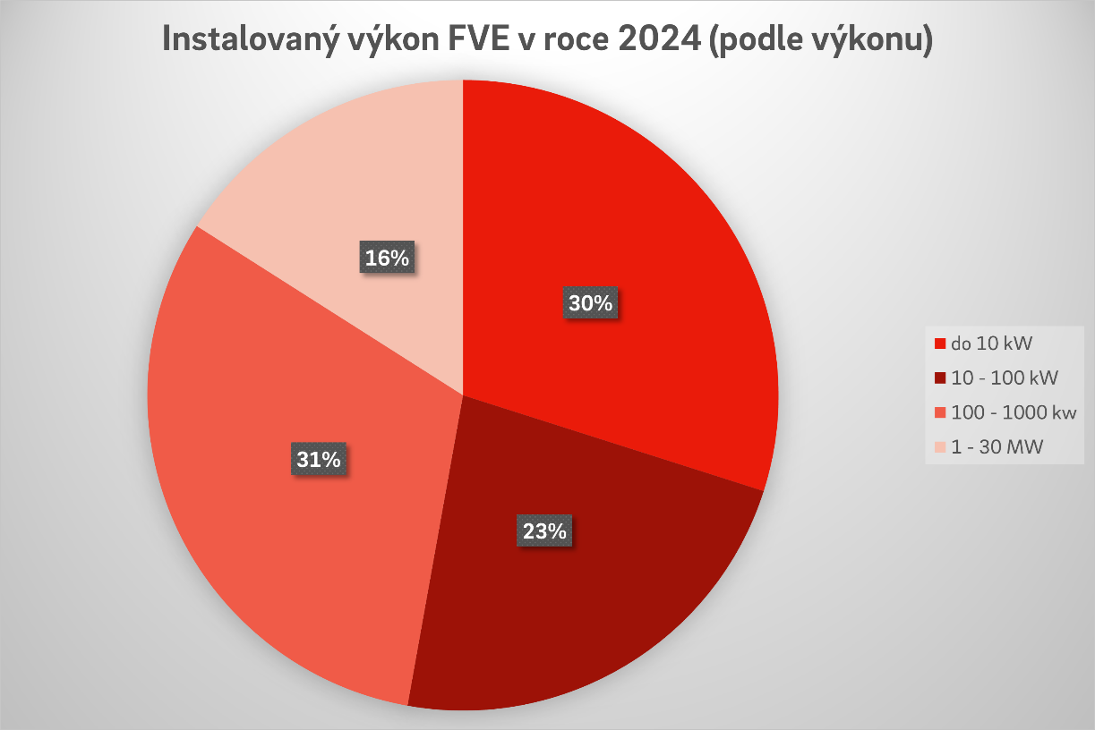 V roce 2024 společnost EG.D připojila do distribuční sítě srovnatelný výkon fotovoltaických elektráren v celkové výši téměř 310 MW jako v rekordním roce 2023 a to i přesto, že došlo k poklesu celkového množství připojených zdrojů přibližně o polovinu. Oproti roku 2023, kdy společnost registrovala enormní zájem především o instalace s výkonem do 10 kW, v roce 2024 došlo k velkému nárůstu připojených fotovoltaik s výkonem od 100 do 1000 MW, kde bylo připojeno bezmála 100 MW oproti 50 MW v předminulém roce.